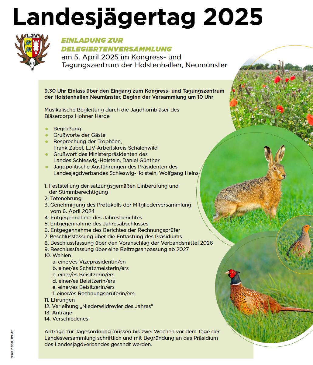 Der Beitrag Einladung zum Landesjägertag 2025 erschien zuerst auf Landesjagdverband Schleswig-Holstein e.V..